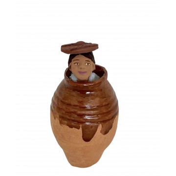 Petit garçon dans un pot provençal , couvercle sur la tête