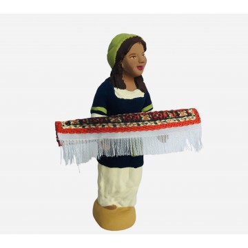 santon de Provence artisanal en argile cuite et peint à la main . la femme orientale au tapis