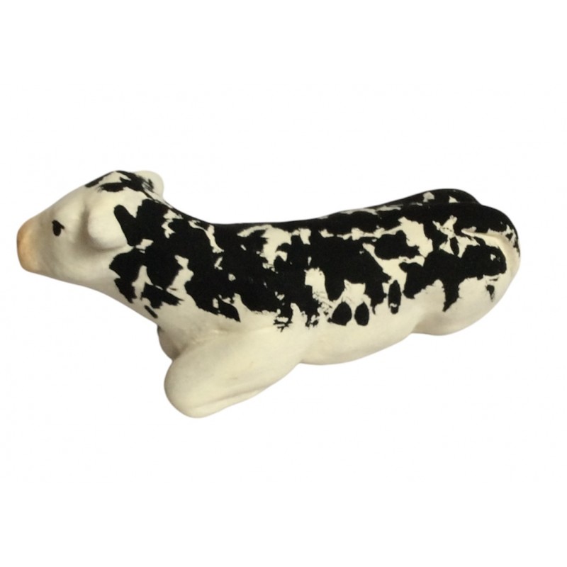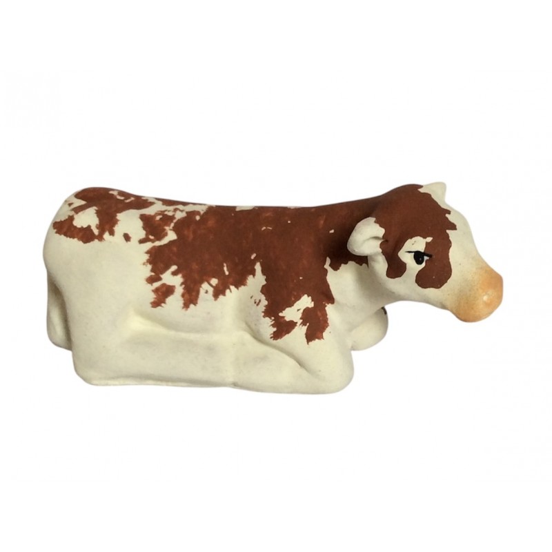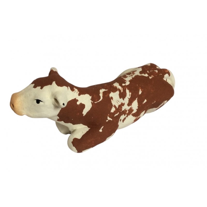 santon de Provence de fabrication artisanale en argile cuite et peint à la main 7cm le veau marron couché